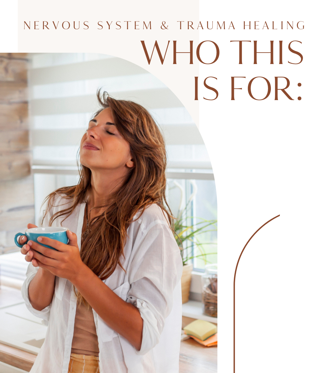 Drawing from Relational Somatics, and trauma-informed nervous system work, we address the root causes of anxiety, overwhelm, chronic stress, and the feeling that you're not safe in your own skin.